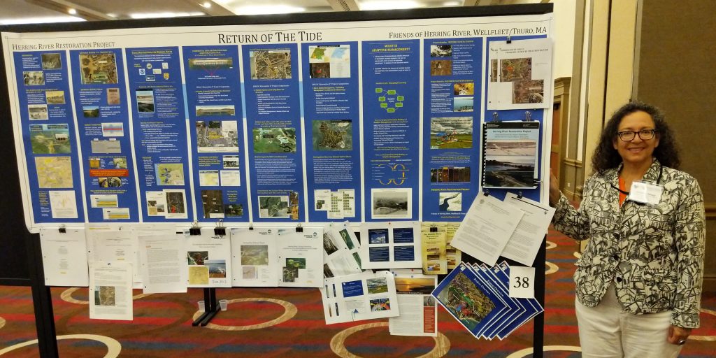 Treasurer of the chapter Ms. Christine Odiaga presented a poster on the Herring River Restoration Project (pictured below), which proposes to incrementally restore 1000+ acres of an estuary that has been severely degraded since the installation of a dike across the mouth of the tidal river in 1909.